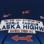 The Alaska-Canadian Highway, also known as the Alcan Highway or simply the Alaska Highway, was an ambitious engineering project constructed during World War II. It has been described as the largest and most difficult construction project since the Panama Canal. The highway begins at Dawson Creek in British Columbia, where this sign and a small cairn mark the start of the road. From there, the 1,400-mile-long highway snakes northwest through Canada to Alaska. The majority of the roadway is...