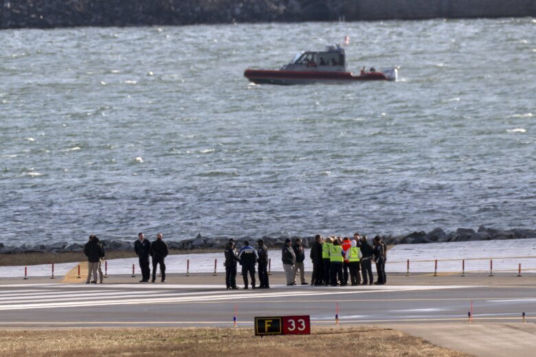 No one survived the collision, which occurred as an American Airlines flight from Wichita, Kansas, with 64 people on board was preparing to land at Ronald Reagan National Airport, just across the Potomac from the capital. The Army Black Hawk helicopter, which apparently flew into the jet’s path, had three soldiers on board.