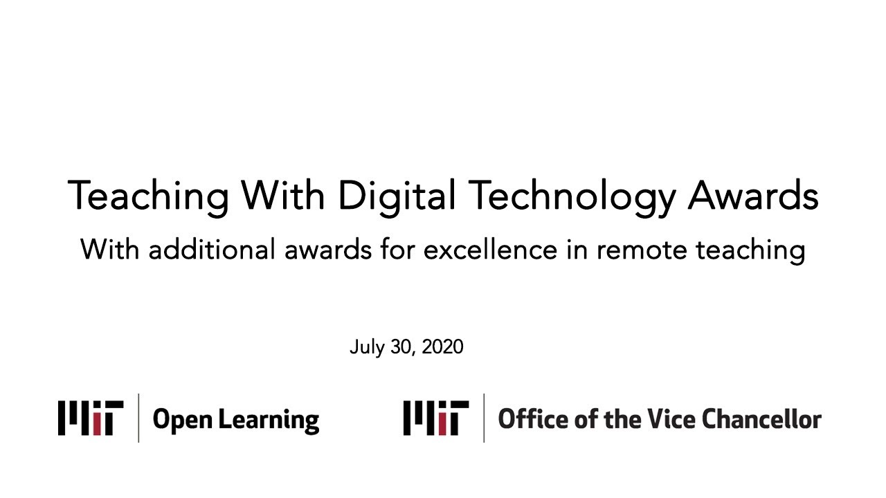On July 30, faculty and instructors across MIT were honored for their outstanding achievements in teaching with digital technology in an online ceremony hosted by Dean for Digital Learning Krishna Rajagopal and Vice Chancellor for Undergraduate and Graduate Education Ian A. Waitz. The student-nominated Teaching with Digital Technology Awards, co-sponsored by MIT Open Learning and the Office of the Vice Chancellor, celebrate Institute faculty and instructors who have made innovative, effective use of technology for teaching and learning. Launched in 2016, the awards have a special significance this year, following the…