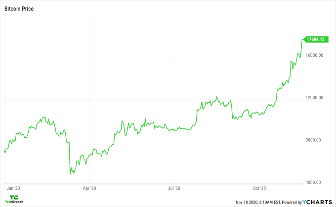 Just in case you hadn’t heard, or are annoyed that folks aren’t writing about it: Bitcoin is rallying, up around 16% in the last week to a value of a little more than $18,000 as of this morning. Here’s a chart of its recent gains, via YCharts (note, it’s a tiny bit behind, so use the chart as a directional instead of absolute tool): What else is there to say about the rally? We could note that bitcoin miner revenue remains far below its historical peaks, despite some recent gains….