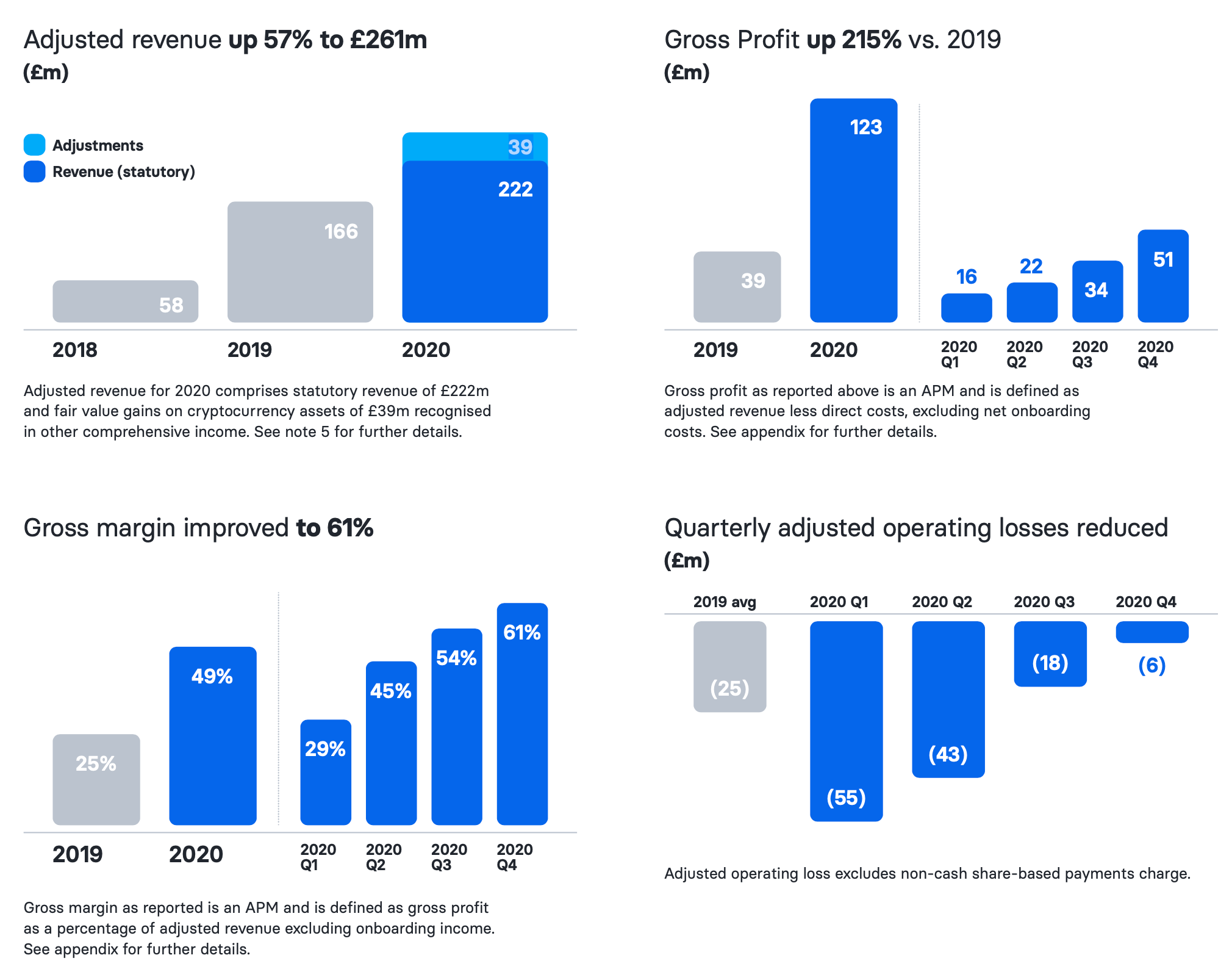 Fintech startup Revolut has filed some financial results and is sharing details with the press. In 2020, the company reported $361 million in revenue (£261 million) — that’s a 57% increase compared to 2019 revenue of $229 million (£166 million). Interestingly, those revenue figures have been adjusted to include fair value gains on cryptocurrency assets — it means that Revolut holds some crypto assets on its balance sheet. Revolut made $54 million (£39 million) in fair value gains on cryptocurrency assets. Gross profit reached $170 million (£123 million) last year….