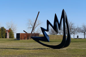 It’s fitting that one of the first sculptures visitors encounter in René Lévesque Park is about feet. David Moore’s “Site/Interlude” consists of five colossal steel legs, each filled with rubble. Spaced along a path like a series of mysterious footprints, they beckon viewers further into the park. Sprawling and spacious, the park does require a lot of walking. At 1,500,000 square feet (140,000 square meters), it’s one of the largest outdoor sculpture gardens in Canada. Twenty-two monumental works by Quebec artists animate the landscape, from Michel Goulet’s colorful flagpoles to…