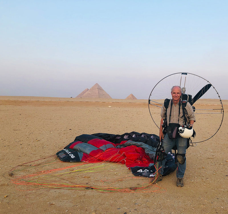 In 1997, New Jersey–based photographer George Steinmetz decided to learn to fly, when he was assigned to shoot in the central Sahara and learned that his bush pilot had backed out. Steinmetz’s aircraft of choice was not an airplane but a motorized paraglider, which is more or less a backpack-mounted motor connected to a single-seat harness hanging under a parachute-like wing. “I originally got into paragliding because I wanted to fly in the Sahara,” he says, “and where I was in the Sahara you could take off and land almost…