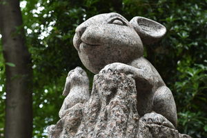 Reportedly established around 771, Tsuki Shrine in Urawa, Saitama, is notable for its association with rabbits. Instead of the typical komainu statues—a pair of lion-like dogs (or sometimes foxes) guarding the shrine—this one has stone bunnies manning the entrance. The shrine is believed originally to have been a sacred storehouse, where the tribute to the gods was kept. In Japanese, such tribute is called mitsugimono, archaically chōmono. The shrine was eventually named Tsuki Shrine, after another pronunciation of the kanji for chō. Some time in the Middle Ages, the name…
