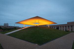 Artist James Turrell, with his “Skyspace” installations, creates meditative yet subtly kinetic spaces in which to observe and contemplate as the Earth’s rotation, with continuous changes in light angle and quality. This installation, part of the Suzanne Deal Booth Centennial Pavilion, on the campus of Rice University, was designed to host musical performances. In consists of a pyramidal grassy mound, topped by an elevated square roof with a square hole in the middle, and two viewing spaces below. Each day except Tuesdays, around dawn and dusk, a light sequence is…