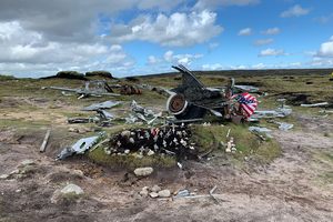 On November 3, 1948, a B-29 Superfortress crashed in the Peak District near Bleaklow. The United States Airforce Boeing RB-29A was part of the 16th Photographic Reconnaissance Squadron. It had previously been used to photograph nuclear testing at Bikini Atoll, including the dropping of an atomic bomb. The aircraft crashed near Higher Shelf Stones on Bleaklow during a routine daytime flight to the US Airforce Base in Warrington. It’s believed that the pilots thought they had passed the hills of Bleaklow, but due to low cloud cover their visibilty was obscured…