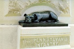 The 13-foot-tall granite and bronze monument stands on Oak Ridge at the Gettysburg National Military Park in Gettysburg, Pennsylvania. It is close to the site of the right flank of the First Corps on July 1, 1863. A bronze statue of a Union soldier stands atop the monument, facing in the direction of the advancing enemy. On the front of the monument, near its base, is a granite ledge holding the bronze likeness of a small dog, her head resting on her front paws and her gaze directed over the…
