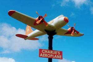So you’re driving the Horrocks Highway on a warm summer day, the Flinders Ranges rising majestically behind you, pastures undulating ahead for as far as the eye can see. Sheep graze, windmills creak, and it’s quiet enough to daydream. Then you see it: a red and white Douglas DC-3 planted in the blue, cloudless sky. Charlie’s Aeroplane—a pole-mounted model—has been a beloved landmark, and sparked the imaginations of locals and visitors alike, in Murray Town, South Australia, for over four decades. It was built by area farmer and businessman, Charlie…