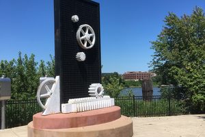 Steel remnants of the former Franklin Street Bridge between Peoria and East Peoria, Illinois, now make up a unique sculpture along the banks of the Illinois River. The monument stands near the spot where the steel truss and bascule (drawbridge) structure spanned the river for eight decades. The Franklin Street Bridge was built in 1911, after an earlier concrete span collapsed into the river soon after it was opened. Engineers said the structure failed when the concrete piers were undermined and weakened. By incorporating a 30-degree curve into the design,…