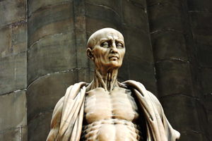 Saint Bartholomew was one of the Twelve Apostles of Jesus Christ. After the Ascension, it’s said the saint traveled to the east, and then onto Greater Armenia. According to traditional hagiography, he was flayed and beheaded there for converting the king to Christianity. Other accounts attest that after his flaying, Bartholomew was crucified. Due to this grisly tale, Saint Bartholomew is often depicted alongside his flayed skin (or severed head) in art, including “The Last Judgment” by Michelangelo. Sixteenth-century Italian sculptor Marco d’Agrate however, depicted him in a much more…