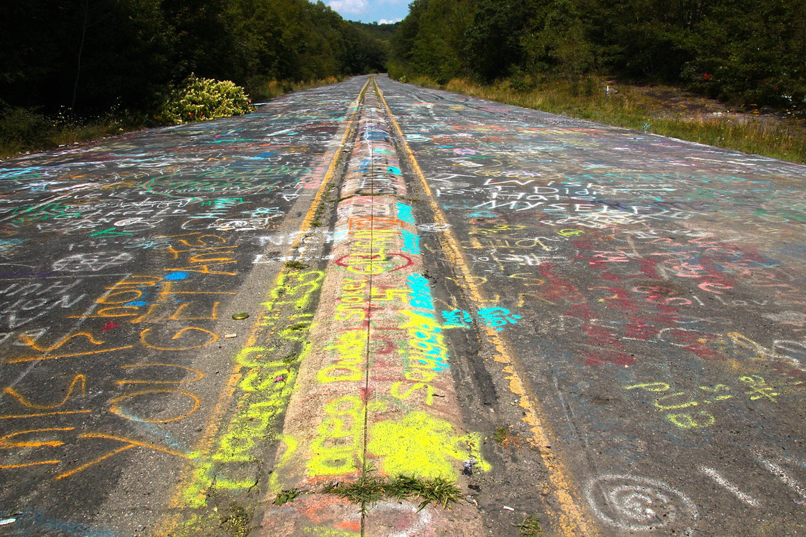 A trio of camera-toting 20-somethings stumble out of a Delaware-plated Honda Civic onto the shoulder of a rural Pennsylvania highway. It’s summer 2020, and amid the pandemic, they’ve road-tripped nearly three hours up circuitous, mountain roads to reach their off-the-grid destination: the notorious, smoldering, coal-country ghost town of Centralia. They’ve come to this remote corner of Columbia County to take in one sight in particular, the vast spray-painted surface a mile of the former Route 61, commonly known as “Graffiti Highway.” But, to their surprise, the promised anarchic, visual feast…