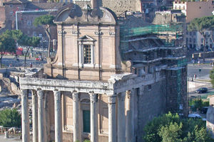 The Temple of Antoninus and Faustina was a Roman temple located in the area now known as the Roman Forum, a large archaeological site in the middle of the city of Rome. Construction on the temple began around 141 CE by Emperor Antoninus Pius to celebrate the memory of his late wife Faustina. It was later dedicated to the emperor himself following his death. The building was transformed into a church around the 7th-century and became known as the Church of San Lorenzo in Miranda. The origin of the name…