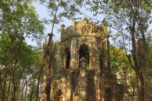 This tomb consists of a square base surmounted by an octagonal structure. Including the cupola, the structure is about three-stories tall. Inside the square base are three off-center tombs. Although there are no epitaphs, it can be assumed they belonged to members of Columbo Sahib’s immediate family. It’s unclear where Columbo Sahib (aka Colombo Saheb) is buried. The tomb is a composite of different architectural styles. The lower structure resembles a Mughal mosque, with four openings, one on each side. The beautifully elaborate upper section exhibits gothic features, and the…