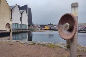 This artwork by Lulu Quinn, with assistance from Alan Hart, consists of a series of speakers assembled with stone such as granite and serpentine, tying them to the iconic geology of Shetland. They are also dotted with seashells and play a series of recordings by Shetlanders. Around 300 recordings, most of them from 2006, consist of residents of the archipelago telling stories and recollections of their memories. Longer fragments of sound are played when the wind is calm but faster winds will lead to shorter clips, with gales causing a…