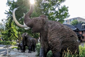 These signs, one depicting a woolly mammoth and the other a Chasmosaurus irvinensis, are a playful homage to the Canadian Museum of Nature’s Centre for Arctic Knowledge and Exploration. Accompanying each signpost are fully fleshed-out replicas of these creatures that provide a glimpse into life during the Late Cretaceous Period and the last Ice Age. The trio of mammoths, two adults and one baby, take inspiration from published scientific research and fossils, including the mummified remains of Dima, a woolly mammoth calf found in Siberia. They were also based on the skeletal remains…
