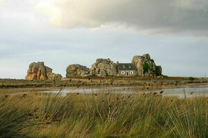Castel Meur, a small stone cottage in Plougrescant, France, was built in 1861 in a precarious position at the tip of the peninsula. At the time, construction was much less regulated and more riskily undertaken. To protect it from the  frequently violent coastal weather, the house was positioned with its back to the sea and flanked on either side by two giant boulders. The unusually located cottage became known as the House Between Two Rocks. It has been passed down through the generations and is currently a private home. Its use…