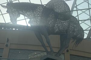 Ahead of its opening in 2013, Trinity Leeds commissioned Scottish artist Andy Scott to make a sculpture as part of its public arts program.  Scott spent 10 months hand-welding small rectangles into the Cleveland packhorse he created, which results in a shimmering effect when you look at the steel sculpture. He wanted to reflect the wool and textile industries that are at the core of the cities industrial heritage, when pack horses were used to carry cloth and other goods from place to place.  The name “Equus Altus” literally means…