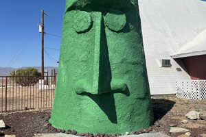 “Giganticus Headicus,” is a giant tiki-style head constructed in 2004 by area artist Gregg Arnold. The statue is 14 feet tall and crafted from cement, chicken wire, and styrofoam. This unique work of art can be found in Antares Point near Kingman, Arizona along Route 66 adjacent to the former Kozy Corner Trailer Park. The main A-frame building where the head sits was originally a location for Nickerson Farms, a popular chain of restaurants/gift shops that existed between 1960 to early 1980. It was later repurposed into a gift shop that…