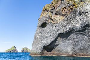 Vestmannaeyjar (Westman Islands) is a small archipelago just off the southern coast of Iceland. The largest of these volcanic islands is called Heimaey, which features various quirky rock formations. The most outstanding rock formation on this island can be found along the western coast and is shaped like an elephant head, with its curious appearance resembling a pachyderm with the trunk being positioned under the Atlantic Ocean. Known as Elephant Rock, it was formed by one of the many volcanic eruptions of Mount Eldfell, the main volcano on the island….