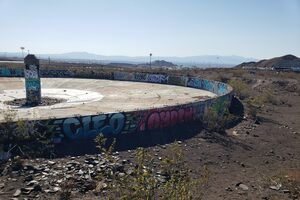 The Three Kids Mine, also known as the Wheel of Misfortune is a unique roadside attraction. The mine was purchased by Henderson, Nevada in July of 2014 and is around 20 miles southeast of downtown Las Vegas. This former manganese mine operated from 1917 to 1961 and is now a popular graffiti location. Visitors to the site can stand on the edge and look inside the massive wheel-like structures. The site became known as the Wheel Of Misfortune in 2012 after an artist known as Aware painted a “Wheel of…