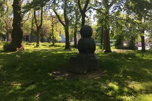 Created in 2014 by Nate Lowman, this sculpture is clearly, as its name suggests, a snowman.  Composed of three spheres of decreasing sizes stacked atop each other. A carrot nose and button eyes are affixed to the uppermost sphere. This statue closely resembles the iconic figure of the winter season. However, viewers will notice how un-snowlike the sculpture truly is due to the dark bronze material used throughout, a juxtaposition to its otherwise close resemblance. Surrounded by green trees in Manchester’s Whitworth Park, the sculpture was placed in this public…