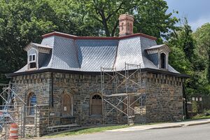 Harewood Lodge was the gatehouse and porter’s lodge for the 191-acre country farm and estate of William Wilson Corcoran in rural Washington County. The Lodge was built in 1857 and was home to Corcoran’s gatekeepers, porters, and groundskeepers. Corcoran is known as the founder of Riggs Bank and the Corcoran Art Gallery. The Lodge, with its distinctive mansard roof, was designed by prominent American architect James Renwick, Jr., who also designed the Smithsonian Castle. Corcoran sold the property to the Soldier’s Home in 1872. A one-story stone wing was added…