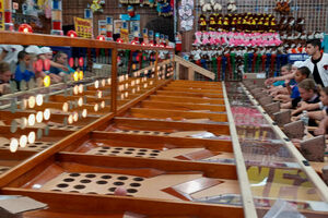 Randy Senna has run Fascination games in Wildwood since 1995, when he relocated Lucky’s Fascination from Seaside Heights. Tributes and Traditions is his latest undertaking, filled to the brim with vintage arcade games, amusement park memorabilia, and a set of about 28 Fascination tables. The tables are from the former Olympic Fascination parlor in North Wildwood. Senna acquired them after Olympic went out of business in September of 2014. The game Fascination is a cross of Skee-Ball and bingo. Each player is seated and rolls a rubber ball, similar to…