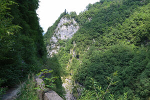 Via Mala is a stretch of an ancient road that links Val di Scalve to Valcamonica along the Dezzo river, which runs at the bottom of a deep gorge. On one side of this gorge, a precarious road was carved out of the rock. Water constantly drips from the sides and ceiling of the overhanging rock, stopping only in winter, when pillars of ice form along the road. To one side of the road is coarse rock, and to the other is an almost vertical ravine of several hundred feet….