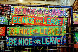 Throughout the streets of New Orleans, you’re likely to stumble upon hand-painted signs made by the prolific local artist known as Dr. Bob. In the Bywater district, known today as one of the most colorful, creative neighborhoods in the city, it all comes together in a technicolor gallery space. Since the 1990s, Dr. Bob has been making art out of his Bywater studio as a response to the changing neighborhood, often returning to his famous mantra of “Be Nice or Leave.” Other signs in his gallery contain variations of it (“Be…
