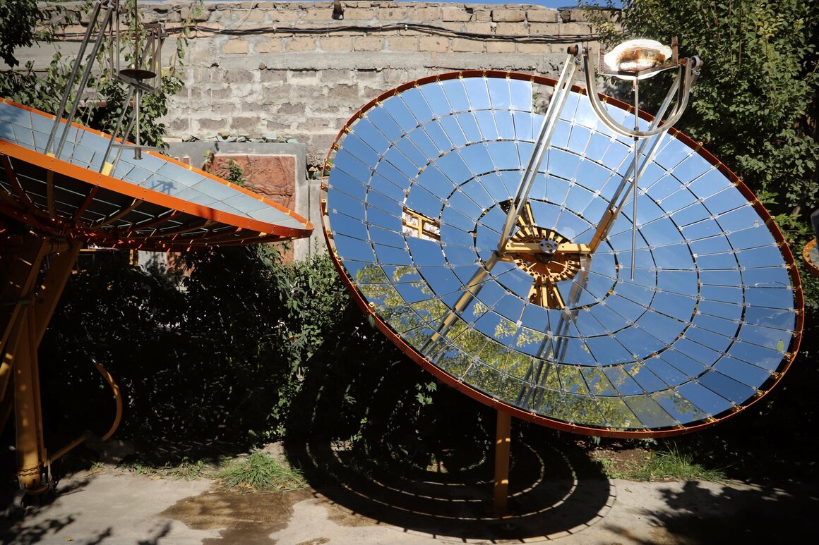 The menu of the cheerful restaurant located inside the Machanents Center lists samples of Armenian cuisine: nettle soup, ailazan (a vegetable dish that they serve fried with Ararat brandy), Marash (lentils, chicken, onions, and lavash). But it’s the Sunny Meals section that has become a hit with diners. After they choose from options such as beef, chicken, eggplants, or trout—which comes from the famous Lake Sevan—the order goes to the kitchen. But the chefs don’t fire up a stove or heat an oven. Instead, they head to the satellite dishes…