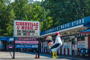 Ciderville defies simple categorization: It’s a country music store, it’s a live music venue, it offers music lessons from area bluegrass musicians, and it’s something of a flea market, but it’s also home to an array of utterly unique installations, monuments, and folk art. One thing it does not do is sell cider. Not anymore, at least. Owner and musician David West was born on the property, nestled along the Old Dixie Highway, which his family has owned for generations. To hear West tell it, an accomplished Texas muralist fell…