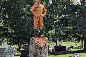 A giant wooden statue of Charles “Old Hoss” Radbourn carved from the stump of a tree stands in the Evergreen Memorial Cemetery. Radbourn was born in Rochester, New York, but his family soon moved to Bloomington, Illinois, where he was raised. In 1878, Radbourn joined the Peoria Reds as a right fielder and pitcher. He pitched professionally for 11 years in the National League and the Players League. During that time he won 310 games and lost 191 for a winning percentage of 619. In 1884, when Radbourn was playing for the Providence…