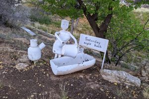 Off the side of a dusty dirt road in Cortez, Colorado, lies a most unusual little neighborhood. Its residents are composed entirely of spare metal parts, painted completely white, and performing a variety of little tasks. One plows the land in a little tractor, another tugs at the reins of a stubborn ox. Some even fish next to a small pond. This is “Creations from Mufflers,” a roadside art project 30 years in the making. Contrary to the site’s name, the people are built not only from mufflers, but old…