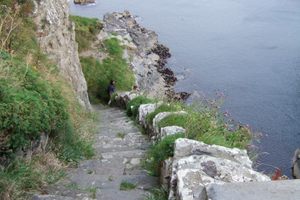 The Whaligoe Steps are the only access to Whaligoe Haven, an ancient harbor in the north of Scotland. The steep stairs are bounded on three sides by cliff faces that reach some 250 feet into the sky. The steps themselves are hewn into the rock, with some recent repairs to allow safe access. Around 1793, Captain David Brodie paid a local stonemason to cut stairs in the side of the cliff, to provide easier access to the harbor. The steps wind a zig-zag pattern that follows the shape of the cliff….