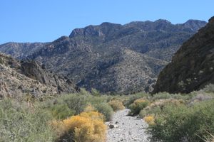 One of the few “official” trails in the Desert National Wildlife Refuge, this path follows an old Jeep road some 5.5 miles up into the Sheep Range. It goes all the way from the low-desert Joshua tree-creosote bush biome in the valley beyond the range front to a ponderosa pine forest, the “Hidden Forest.” The route follows a rugged, scenic canyon flanked by limestone spires and cliffs.  An old cabin sits at the end of the trail, as well as Wiregrass Spring, one of the few perennial springs in the…
