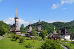 The Convent of the Holy Apostles, the largest and most impressive in northwest Romania, stands on a plateau looking down on the Iza River. It was rebuilt starting in 1993 on the site of an old monastery abandoned during the 1790s and is now home to an Orthodox community of nuns. The church, designed by the architect Dorel Cordoș and built by a team of local carpenters (Ioan Știopei Buga, Petru Boris, Vasile Rus, Toader Bârsan, Ioan Bârsan, and Petru Iura), is probably the finest example of contemporary Romanian religious…