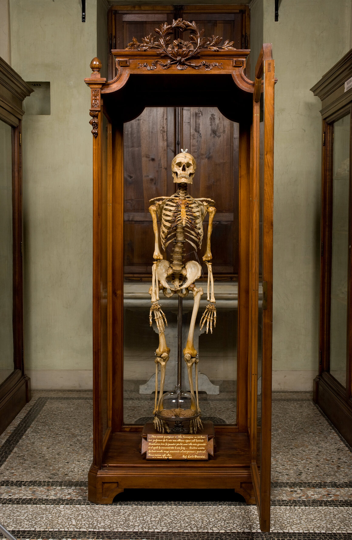 Tucked between the tibias of a standing skeleton in a museum in Turin, Italy, is a peculiar glass dome. The small container almost escapes notice, located in the last room of the Luigi Rolando Museum of Human Anatomy. Despite the wooden plaque below the item, the explanation just raises more questions. “Being neither an advocate of cremation nor cemeteries, I would like my bones to be laid to rest in the Anatomical Institute,” the inscription reads. “I would also like my brain to be preserved with my method and placed…