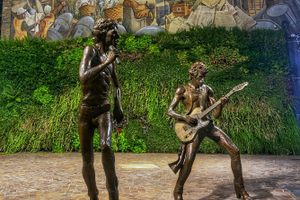 The statues of Mick Jagger and Keith Richards of the Rolling Stones were unveiled in Dartford, Kent, in 2023. Created by sculptor Amy Goodman, the bronze statues celebrate the rock legends’ local roots, freezing the rockstars in dynamic poses that embody their stage energy and musical chemistry. The statues, called The Glimmer Twins, are installed at One Bell Corner in Dartford’s High Street, near where the musicians grew up and met as young men, later leading them to start their band. The project was funded through a public art subscription…
