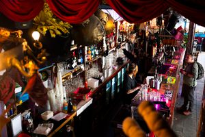 Located in London’s Waterloo theatrer district, this pub is owned and operated by the same people as the underground (literally in this case, as it exists directly beneath Waterloo Station) art space, The Vaults. After a performance’s run is over, stage props and sets, lighting elements and costumes make their way to the pub, where they find a new life as unconventional interior design. Fancy a pint while sitting in a crescent moon? Want to sip your cider in a mini tree house? Prefer your lager in the Cave of…